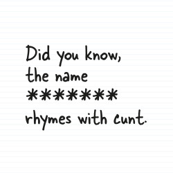 View Options Personalised Name Rhymes with Cunt Greeting Card £3.95 Personalised Name Rhymes with Cunt
