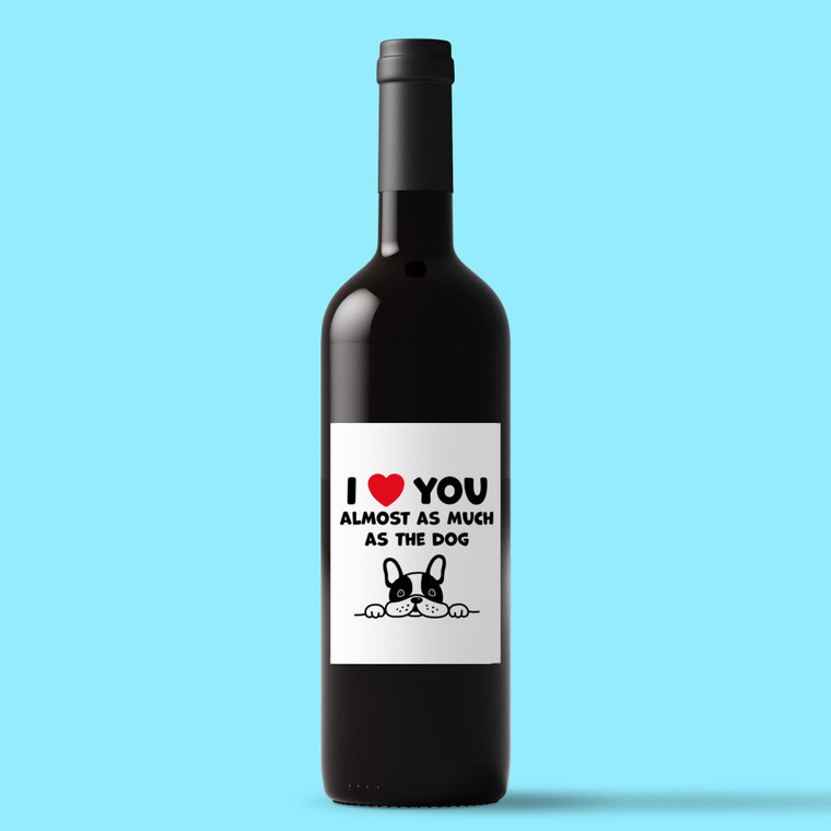 Transform their favourite bottle of the good stuff by adding you own novelty label printed with "I Love You Almost As Much As The Dog" to make a truly unique gift. Bottles with novelty labels make an excellent centrepiece for any special occasion!