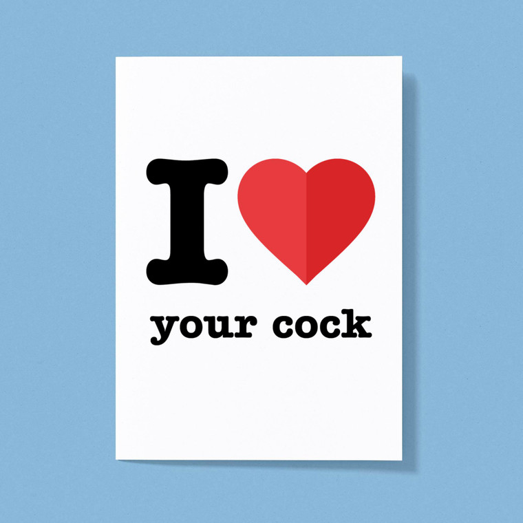 A rude greetings card with a colourful heart graphic and I Love Your with a choice of either Cock or Minge printed on the front. This rude greetings card is great for anyone and ideal for any occasion.
