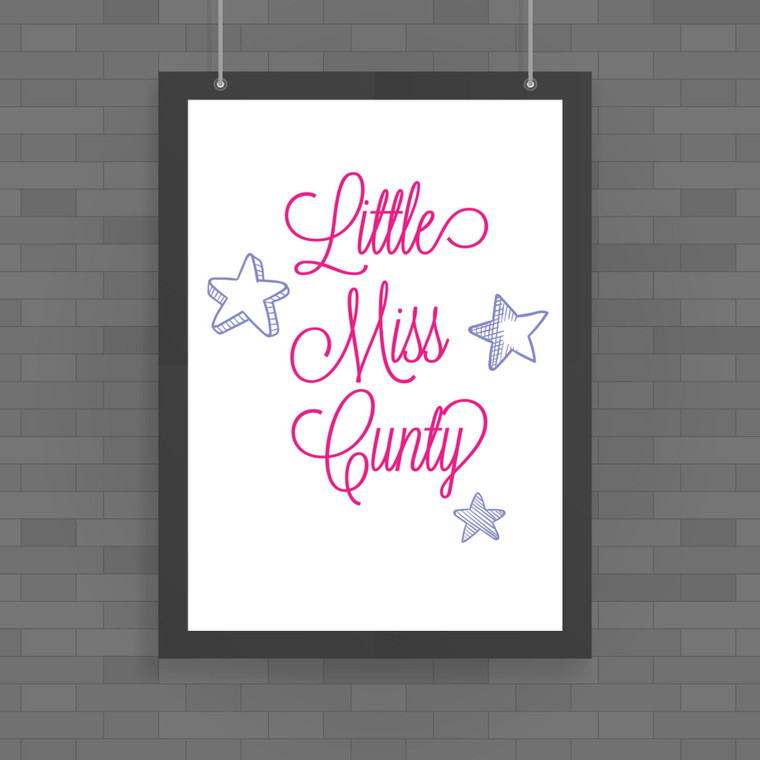 A fantastic addition to any room, this colourful rude poster is a great way to show how much you care! This wall art print with "Little Miss Cunty", will be the centrepiece of any room, great as a gift for any occasion.