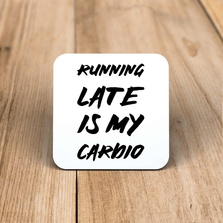 A novelty gift coaster with "Running Late Is My Cardio" printed on a high gloss coaster. Simple and straight to the point this novelty coaster is great as a gift for any occasion.
