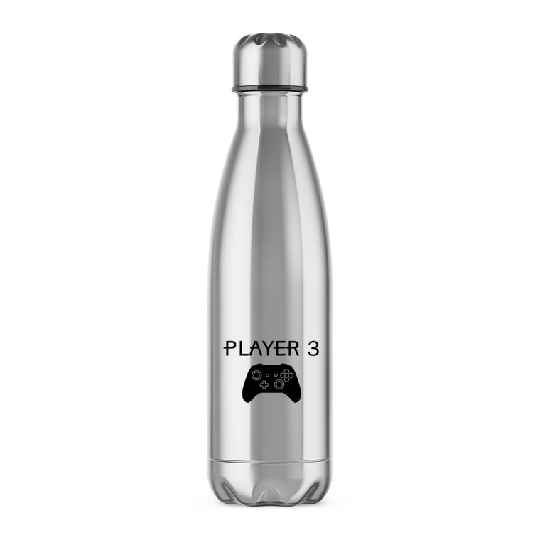 Stay hydrated in style with this geeky water bottle with a game controller graphic beneath "Player" and the number of your choice printed on both sides. This geeky water bottle is perfect for keeping your favourite beverages at just the right temperature in any weather. Makes a great gift for the Xbox gamer in your life