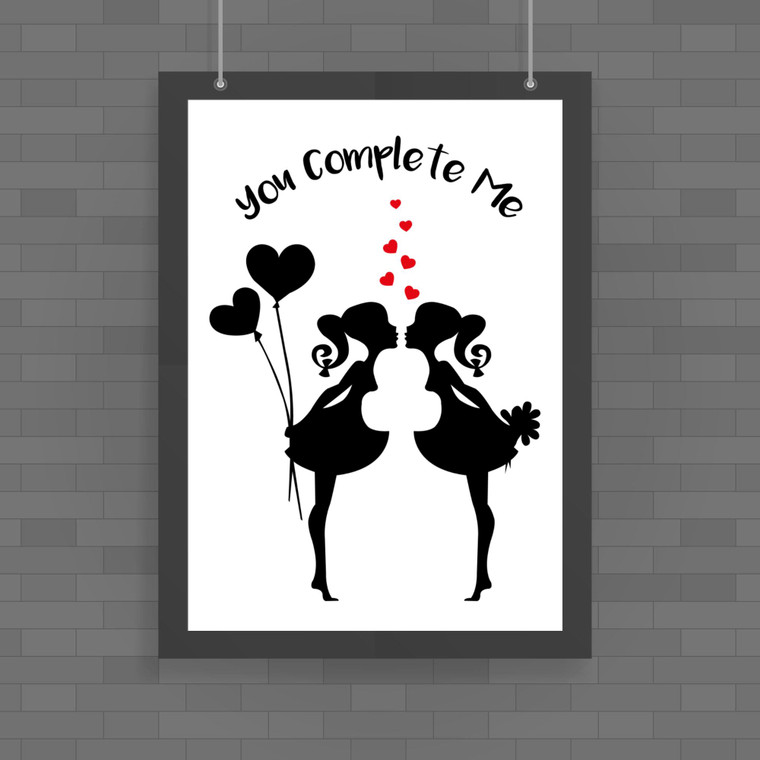 A fantastic addition to any room, this colourful novelty poster is a great way to show how much you care! This wall art print, with "You Complete Me", will be the centrepiece of any room, great as a gift for any occasion.